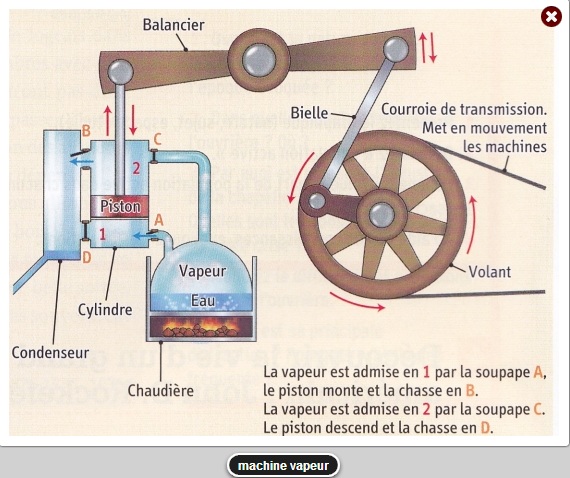 – La machine à vapeur, mise au point par James Watt en 1769.