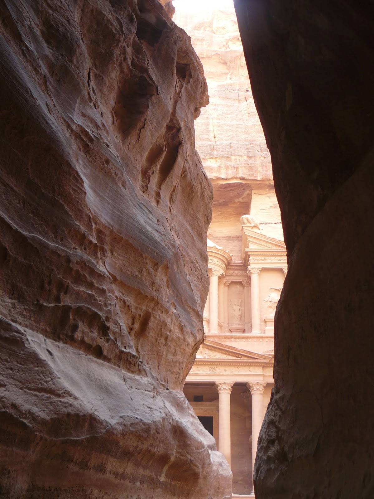 Il faut compter trente à quarante cinq minutes de marche entre l’entrée du site et l’apparition de la première merveille. Nous empruntons pour cela le Siq, une « gorge étroite » de 1km environ où les falaises nous entourant mesurent jusqu’à 80 m de haut. C’est impressionnant. Le site est immense. Il fait plus de 264 000 m².