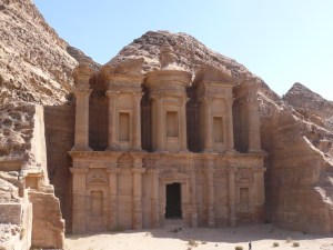 Le monastère Al-Deir se trouve à l’autre bout de Pétra, après 4km de marche et 800 marches. Cela a le mérite d’être moins accaparé par les touristes: voyez à midi le peu d’affluence et il est tout aussi impressionnant que le Trésor « Al-Khazneh