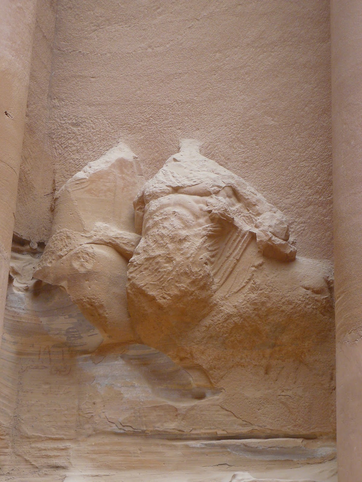 Plus loin sur le site, il y a aussi les ruines d’un Temple des lions ailés, une rue des Colonnades et un temple dont les murs sont encore debouts: après le Great Temple, on aperçoit le Qasir-al-Bent.